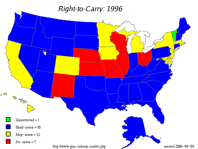 Over the last 20 years, gun owners in the United States have made significant progress in the right to carry firearms for their own defense. Unlike lawful gun owners in the UK who had their handguns confiscated in July 1997. Whether this has had an impact on violent crime I leave you to decide.