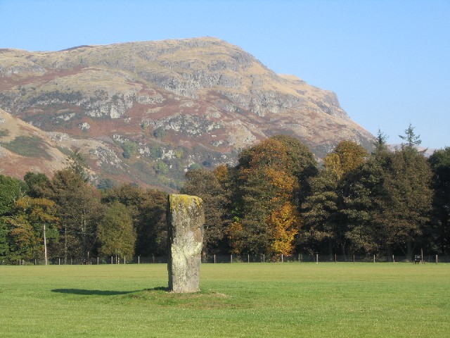 This standing stone, now surrounded by rugby pitches, is called "The Gathering Stone." It is on the Airthrey Estate (The University of Stirling Campus) where Kenneth mac Alpin, King of Scots, defeated the Picts to begin the creation of a unified Scotland in 843 AD. To see what the standing stone looked like in January 2000 before the construction of the rugby pitches, click here. ![]()